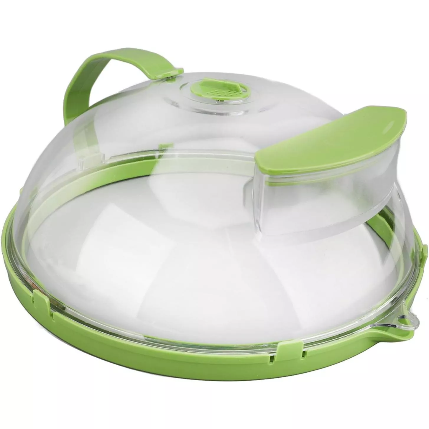 Sick of scrubbing stubborn food splatters from your microwave? This 10-inch clear microwave food cover is the simple yet smart solution every kitchen needs. Designed to shield your microwave from messy spills and steam buildup, it helps keep your appliance cleaner, your food more evenly heated, and your kitchen routine more efficient. With a built-in water steamer and an easy-grip handle, this microwave cover does more than just protect — it improves how you reheat and cook.