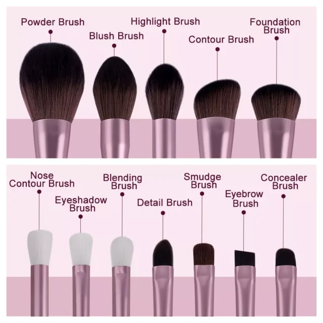 Our makeup brush set features 12 high-quality brushes, each designed for a specific purpose. The set includes brushes for foundation, powder, eye shadow, concealer, face blusher, and more. The hair is made from premium synthetic fibers, which are cruelty-free and designed to minimize shedding. The handles are crafted from durable purple wood, providing a comfortable grip that makes application easy and precise.