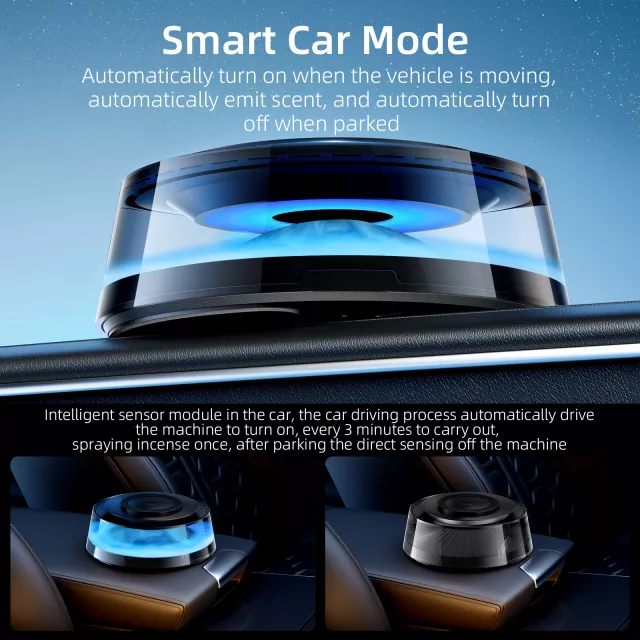 • Smart Car Mode – Auto-spray feature activates while driving for consistent scent refresh