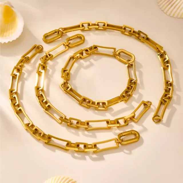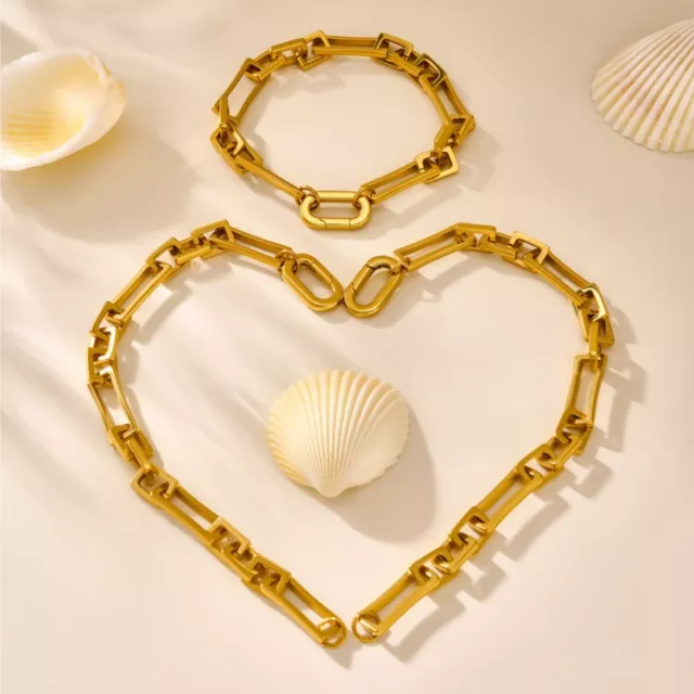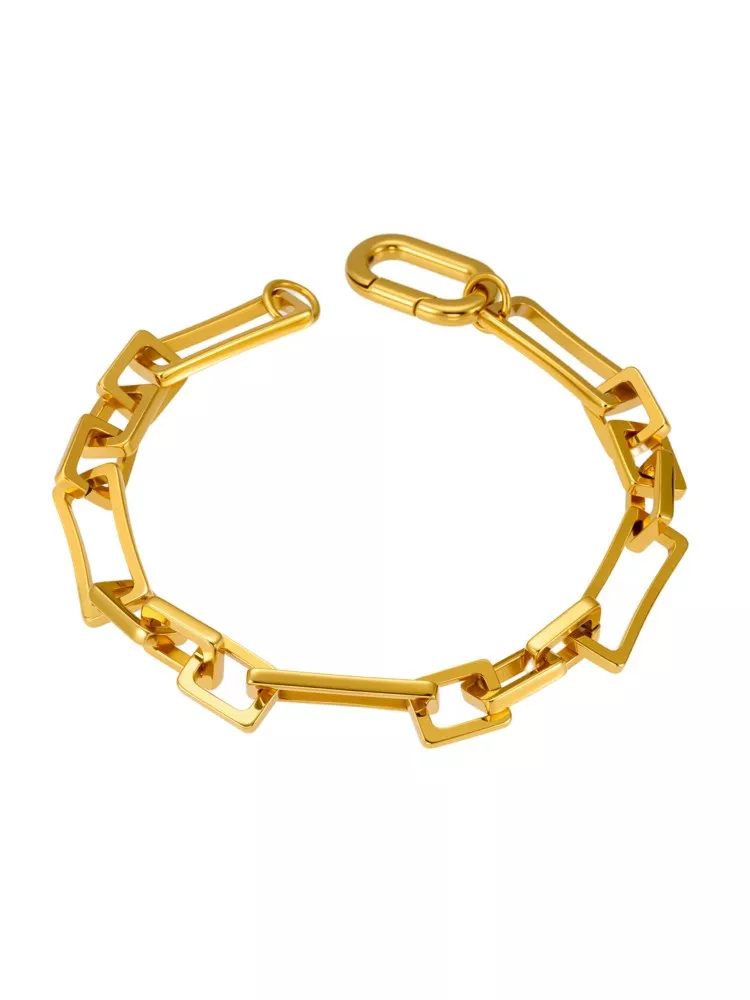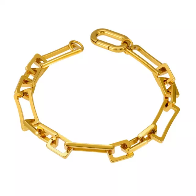 Make a statement with this stunning 18K gold plated chunky link chain bracelet—a bold blend of elegance and edgy hip-hop flair. Crafted from premium stainless steel, this bracelet is waterproof, non-tarnish, and designed to keep its shine no matter where life takes you. Whether you’re dressing up for a night out or adding flair to your everyday look, this piece adds instant confidence and attitude to any outfit.