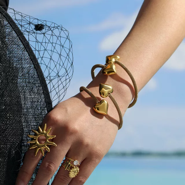 Fall in love with the delicate charm of this glossy heart cuff bracelet, designed to add a touch of romance and elegance to any outfit. Crafted from high-quality stainless steel and plated in radiant 18K gold, this bracelet blends classic beauty with modern durability. The elastic, open bangle design ensures an easy fit, while the polished heart detail creates a sweet focal point that’s perfect for any occasion.