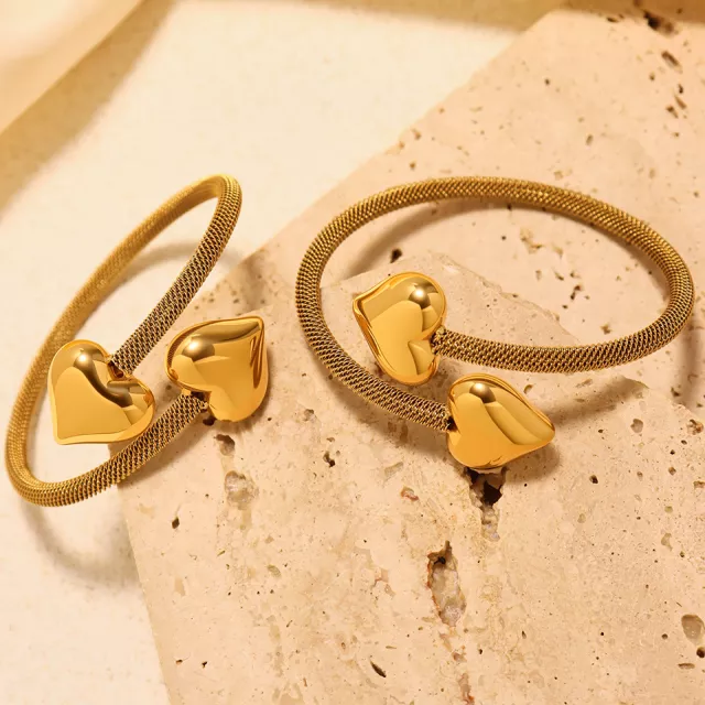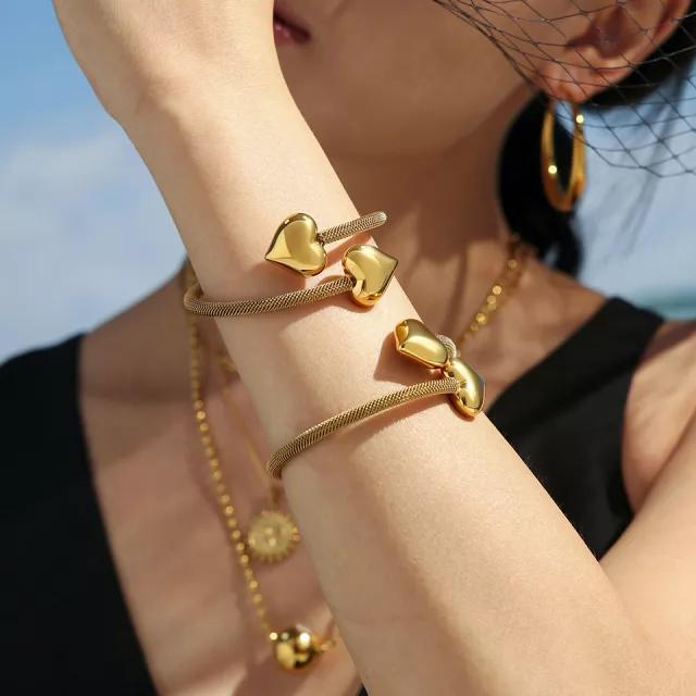 18K Gold Plated Heart Cuff Bracelet for Women