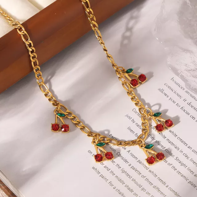 Crafted with care, this jewelry set features a delicate cherry pendant that adds a whimsical yet chic touch to your look. The necklace and bracelet are both made from high-quality stainless steel, ensuring long-lasting shine and durability. The 18K gold plating provides a luxurious finish that resists tarnishing, making these pieces ideal for repeated wear.