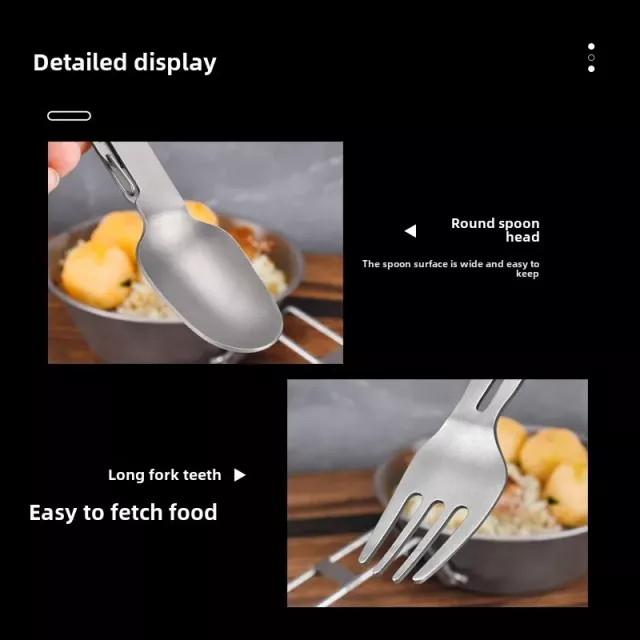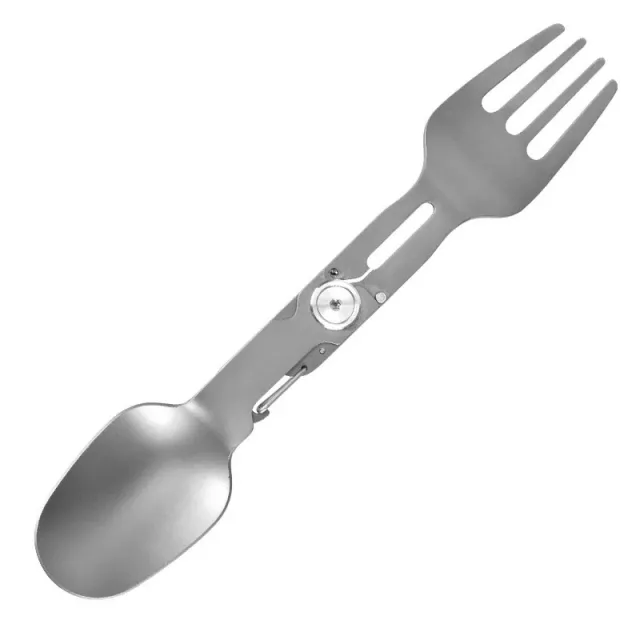 Crafted from high-quality titanium alloy with stainless steel components, this spork offers unbeatable strength without adding bulk to your pack. Measuring approximately 5.1 to 7.2 inches in length, it folds down compactly to save space and slides easily into your pocket, pouch, or mess kit. With a fork on one end and a spoon on the other, it handles all types of meals—soups, pasta, rice, or even campsite grilling—with ease.
