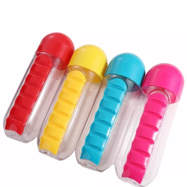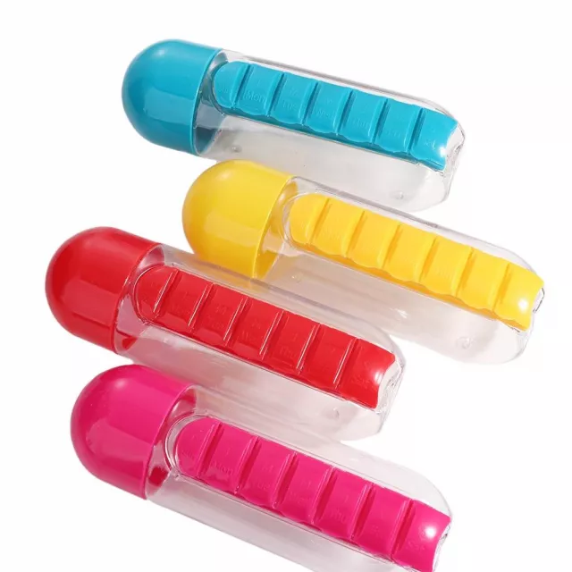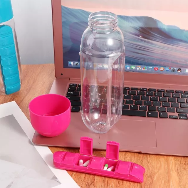 • 2-in-1 Design: Combines a water bottle and 7-grid pill organizer in one compact accessory.