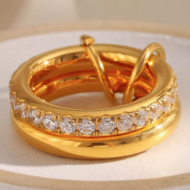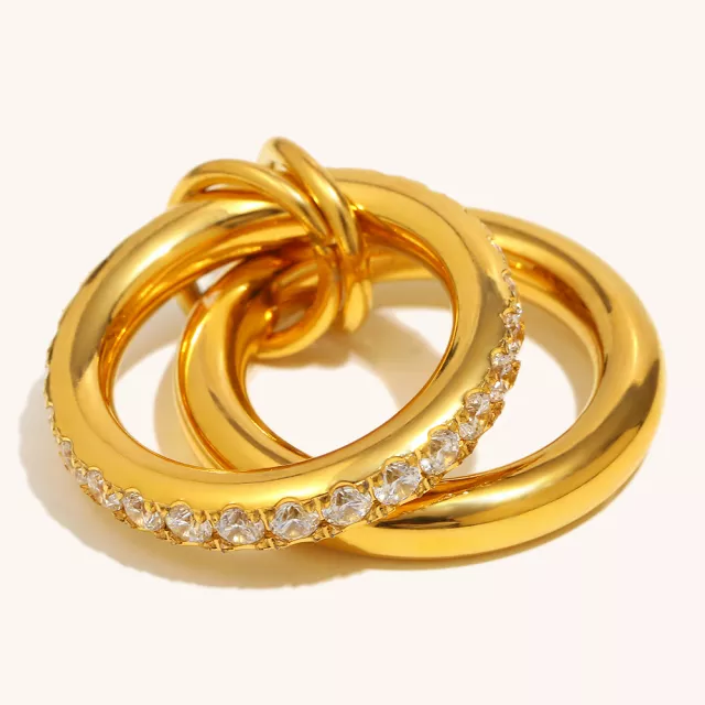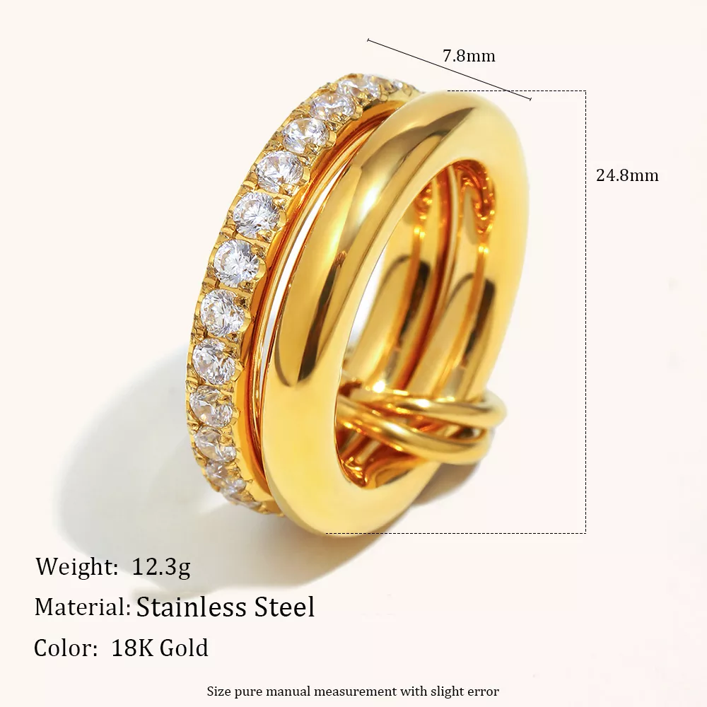 Made from premium 316L stainless steel and coated in rich 18K gold plating, this ring is designed to last. The double-layer design with shimmering zircon inlays sets it apart from ordinary rings, giving it a distinctive charm that complements any outfit. Thanks to its hypoallergenic properties and waterproof finish, you can wear this ring comfortably all day long without worrying about irritation or tarnishing. With a smooth, polished finish and a sturdy prong setting, it’s as durable as it is beautiful.
