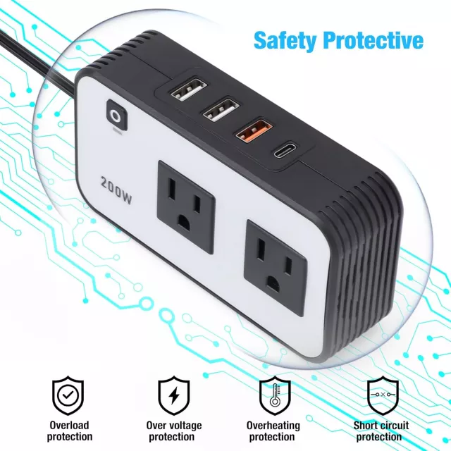 This inverter is crafted from premium aluminum alloy, offering durability and efficient heat dissipation. It’s equipped with intelligent safety protection against overload, overheating, and short circuits—keeping both you and your vehicle safe during every use. With independent power switching and a built-in cooling design, it helps conserve your car’s battery while extending the device’s lifespan.