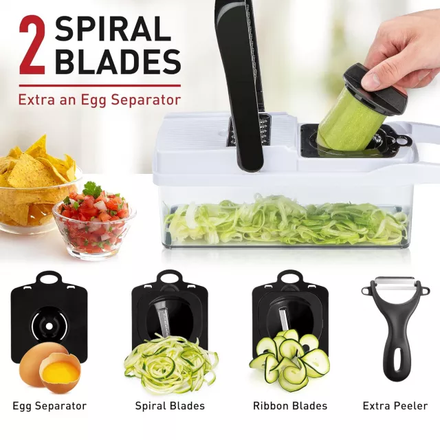• 25-in-1 functionality for chopping, slicing, dicing, grating, spiralizing, and more