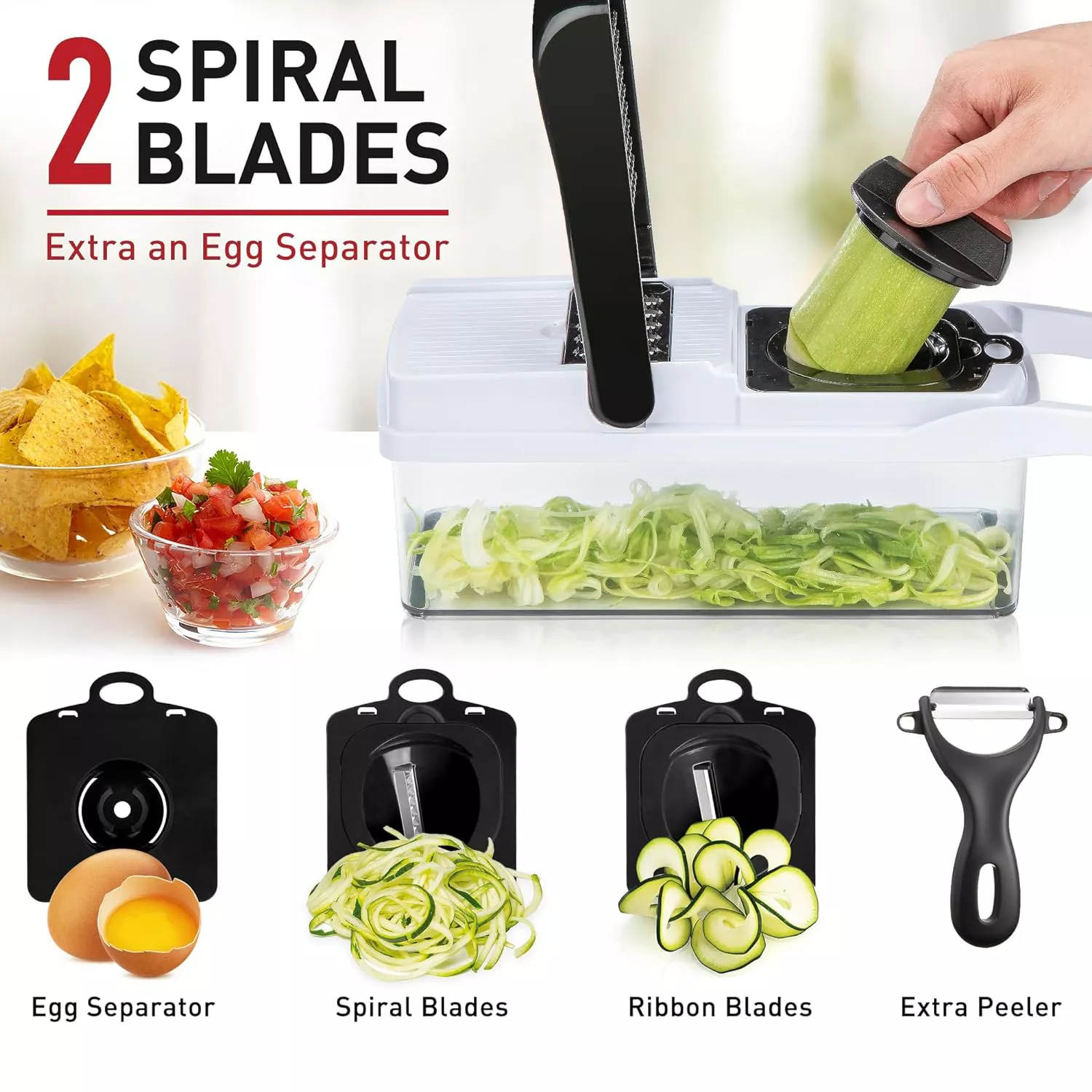 25-in-1 Vegetable Chopper & Slicer with Catch Tray and Spiralizer Blades