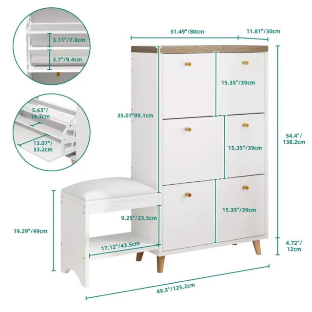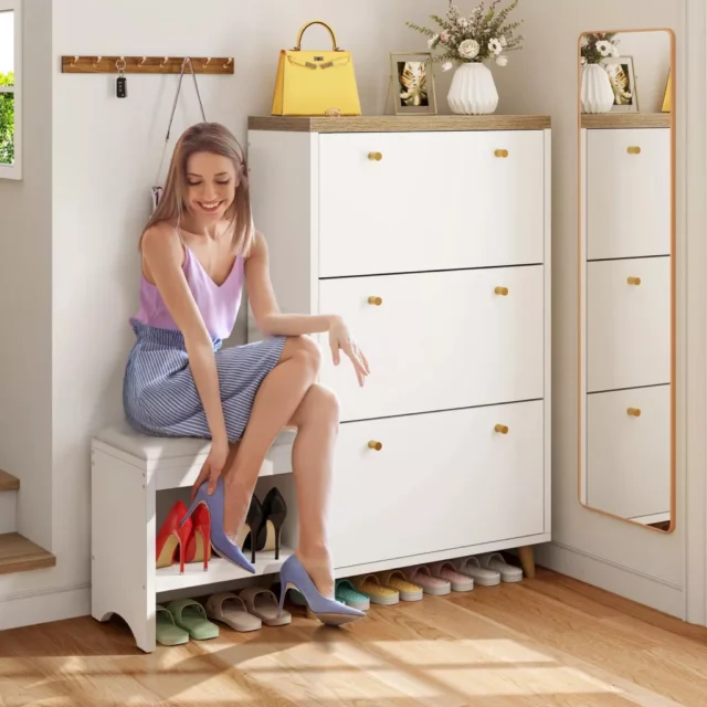 Our shoe cabinet is not just a storage solution; it’s a statement piece that reflects your taste and organizational prowess. It’s ideal for those looking to save space without sacrificing style. Whether you’re dealing with a cramped entryway or a cluttered bedroom, this shoe cabinet offers a chic solution to keep your footwear organized and your space tidy. The combination of practicality and elegance makes it special, ensuring it’s not just another piece of furniture but a valuable addition to your home decor.