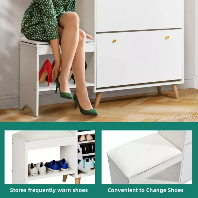 Introducing a revolutionary way to declutter and enhance your living space with our sleek, multifunctional shoe cabinet. Say goodbye to messy piles of shoes scattered around your home. This elegantly designed shoe organizer is not just a piece of furniture; it’s a lifestyle upgrade that brings harmony and style to your entryway or living room. Crafted with meticulous attention to detail, it seamlessly blends functionality with aesthetic appeal, making it a perfect addition to any modern home.