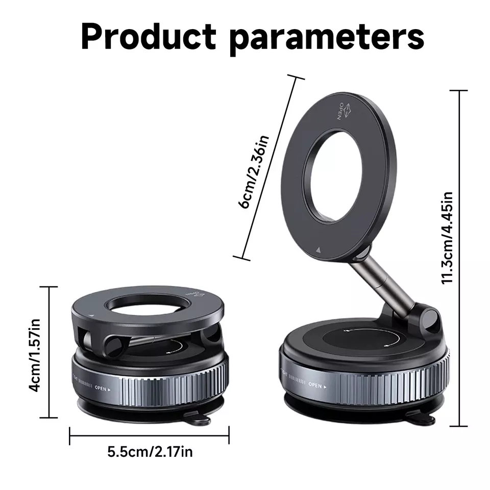 This magnetic car mount is best used when you need your phone within view but out of your hands—perfect for navigation, streaming music, or taking calls. What makes this mount special is its combination of smart vacuum technology with powerful magnetic grip, offering unmatched stability and effortless use. With its modern design and ultra-practical features, it’s the car accessory you didn’t know you needed—until now.