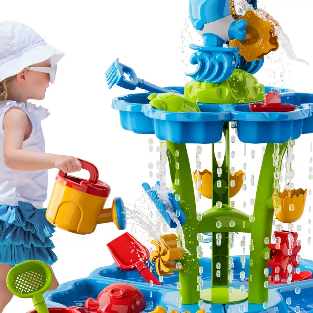 This water & sand activity table shines brightest during warm weather. Use it in the backyard during cookouts, bring it along to the beach, or set it up on the patio for a fun-filled afternoon. The splash tower and moving parts create a mini water park experience, making it the ultimate summer toy. It also doubles as an indoor sensory table on rainy days, giving your child an outlet for tactile and imaginative play year-round.