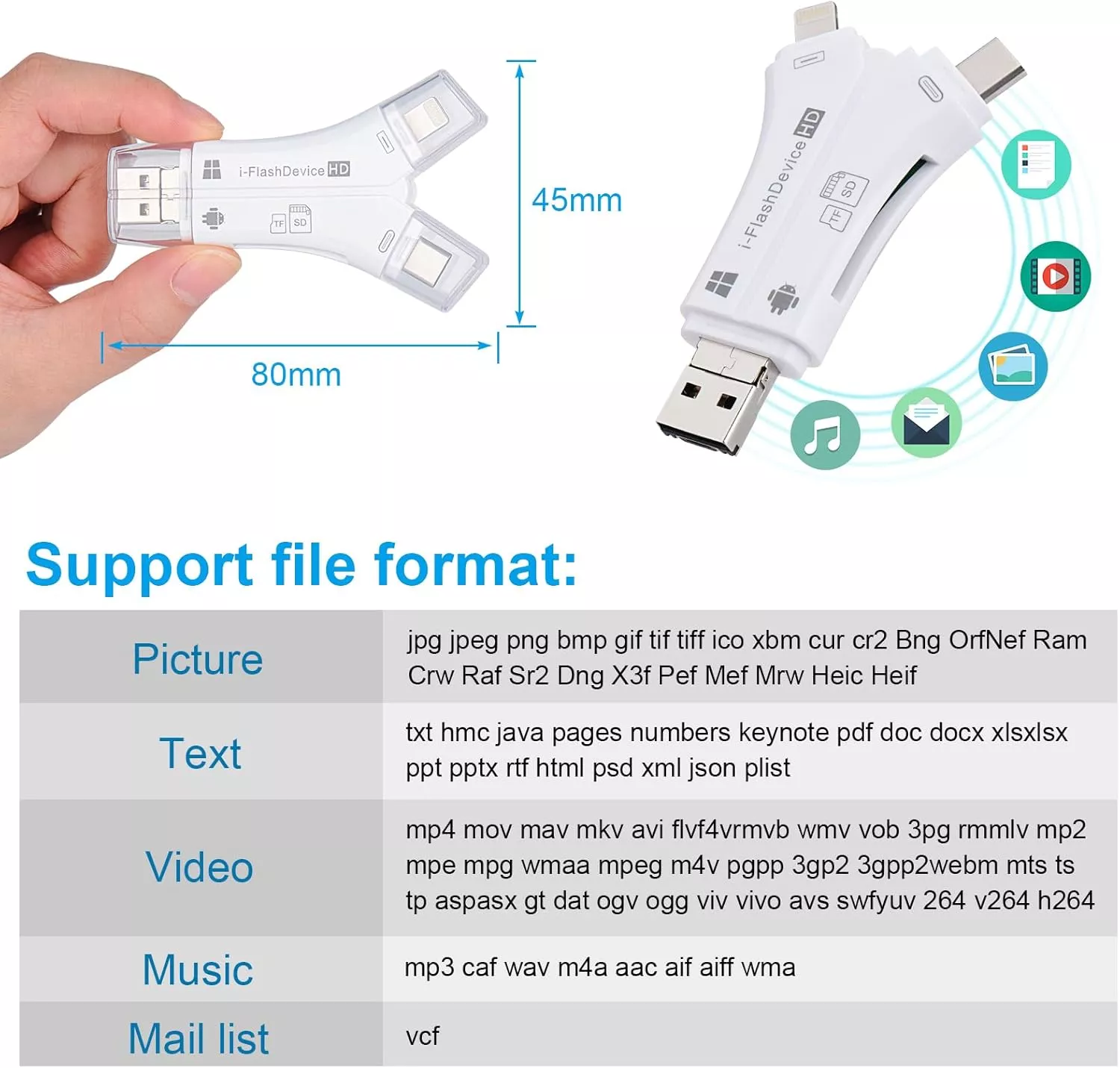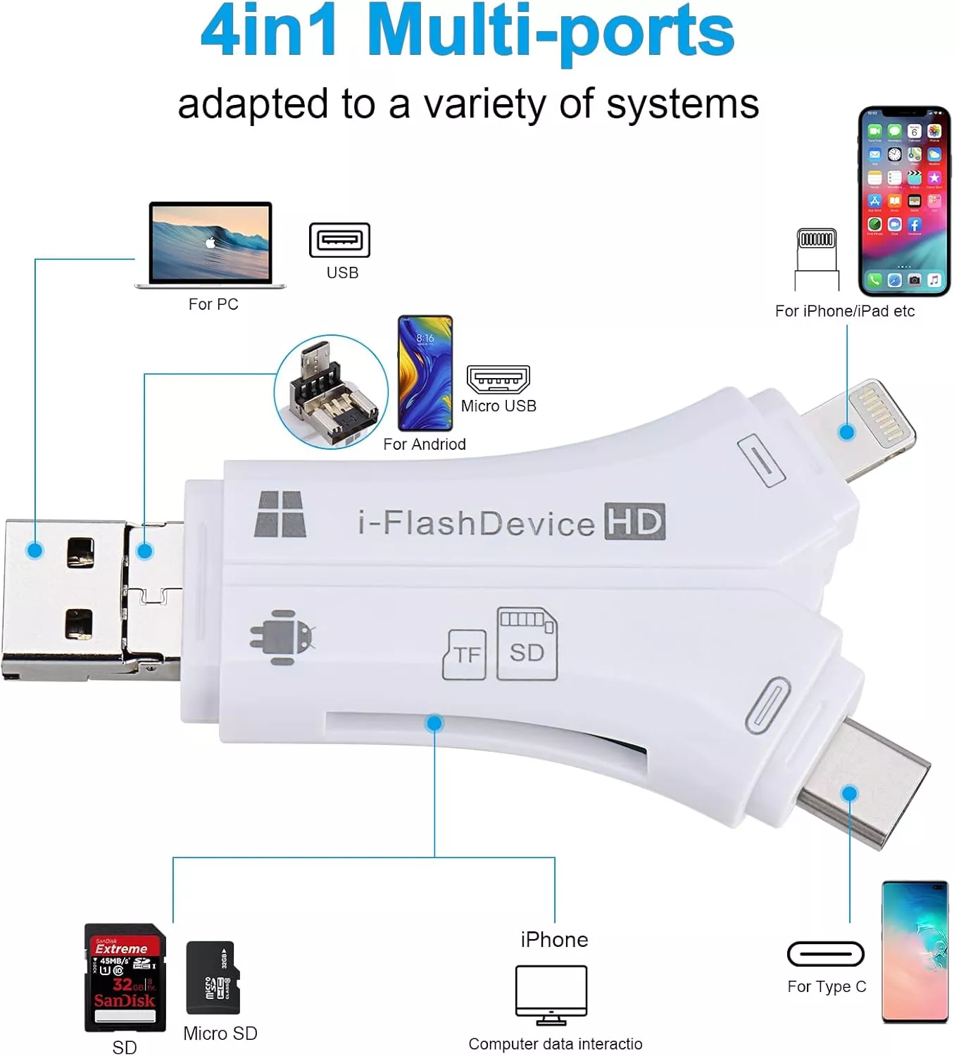 Meet your all-in-one data transfer solution — the 4-in-1 Multifunctional USB Card Reader. Whether you’re switching phones, backing up important files, or managing photos on the go, this versatile gadget is designed to keep up with your fast-paced, multi-device lifestyle. Say goodbye to tangled cables and messy adapters — this card reader is sleek, simple, and seriously smart.