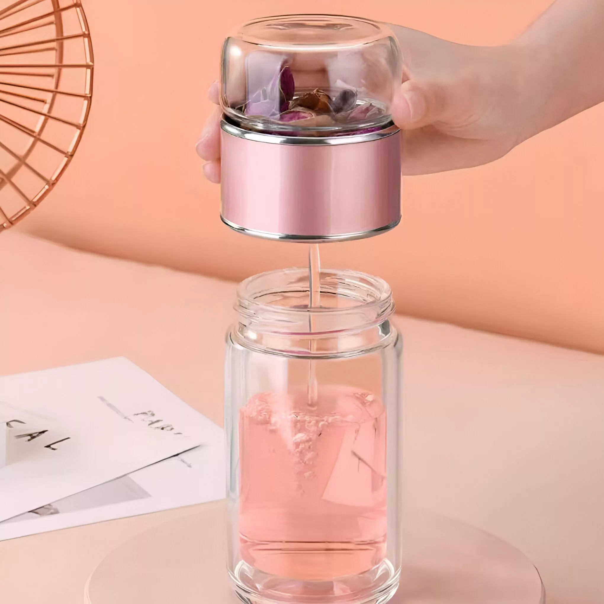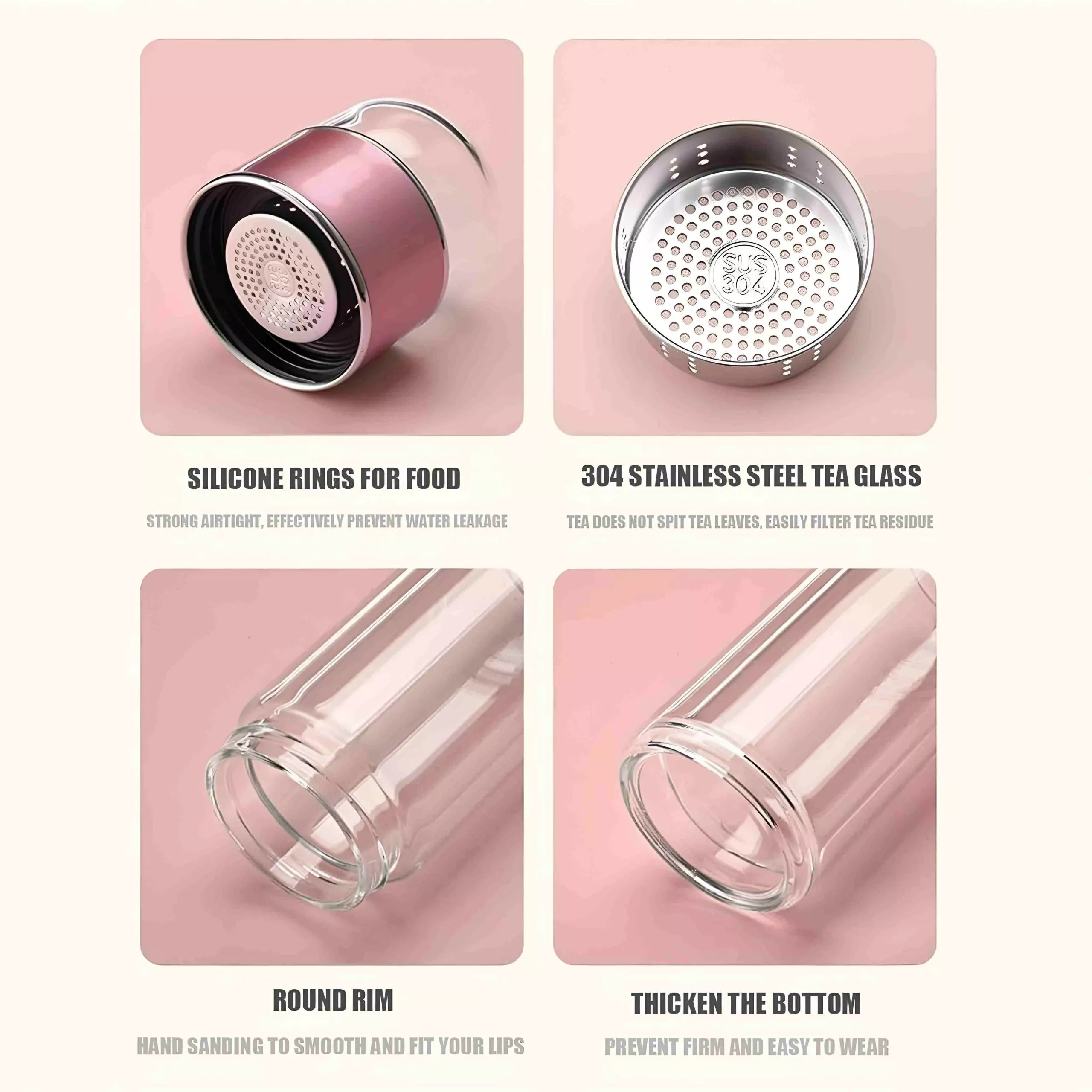 Discover the perfect balance of elegance and functionality with this 420ML Double Wall Glass Tea Infuser Bottle. Crafted from high-quality borosilicate glass, this tumbler is designed to withstand everyday use while giving you the luxury of enjoying your favorite beverages wherever you are. Whether you’re at work, relaxing at home, or on a weekend adventure, this tea infuser bottle brings convenience and style right to your hands. Its sleek design and practical features make it an ideal companion for tea lovers and anyone who enjoys drinks on the go.