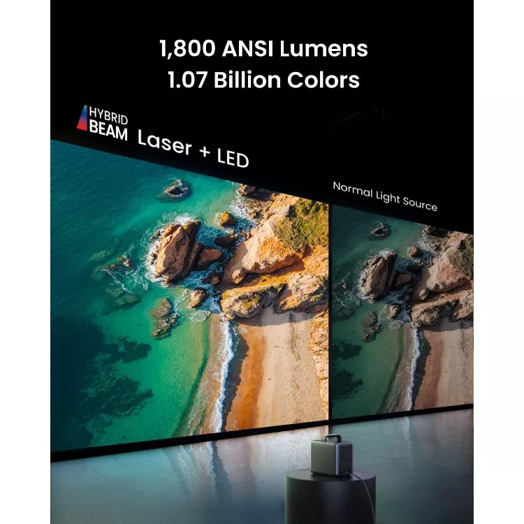 With 4K resolution enhanced by Dolby Vision, you’ll enjoy visuals with 40× more brightness and 50× better contrast, bringing every scene to life in stunning detail. The advanced HybridBeam Technology combines laser and LED light sources to produce 1,800 ANSI Lumens and over a billion rich colors. The result? A vibrant, immersive experience that works beautifully in both dark and well-lit rooms.