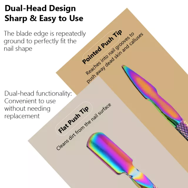 Crafted from premium titanium stainless steel, these tools offer the perfect blend of durability, precision, and style. The double-headed design on each pusher allows you to perform multiple nail care tasks with just one tool, saving space in your kit and time in your routine. Thanks to the sleek titanium finish, they’re also easy to clean, rust-resistant, and built to last.