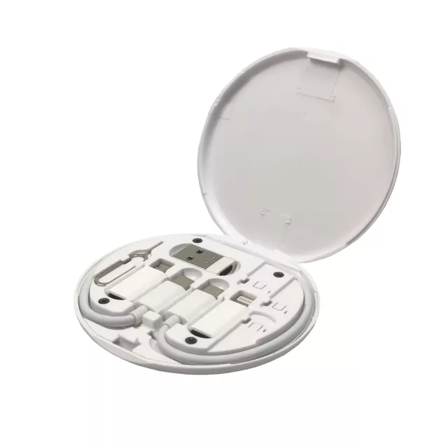 This multifunctional cable set includes a versatile range of adapters and cables designed to work with most devices. The kit supports 2.4A fast charging and data transmission — making it perfect for powering up smartphones, tablets, or other USB-compatible gadgets. Its cleverly designed compact storage box doubles as a phone holder, ideal for watching videos or gaming hands-free while charging. Crafted with high-quality tinned copper wire and a durable ABS shell, it ensures stable charging and protects against overheating, even during long gaming sessions or video calls.