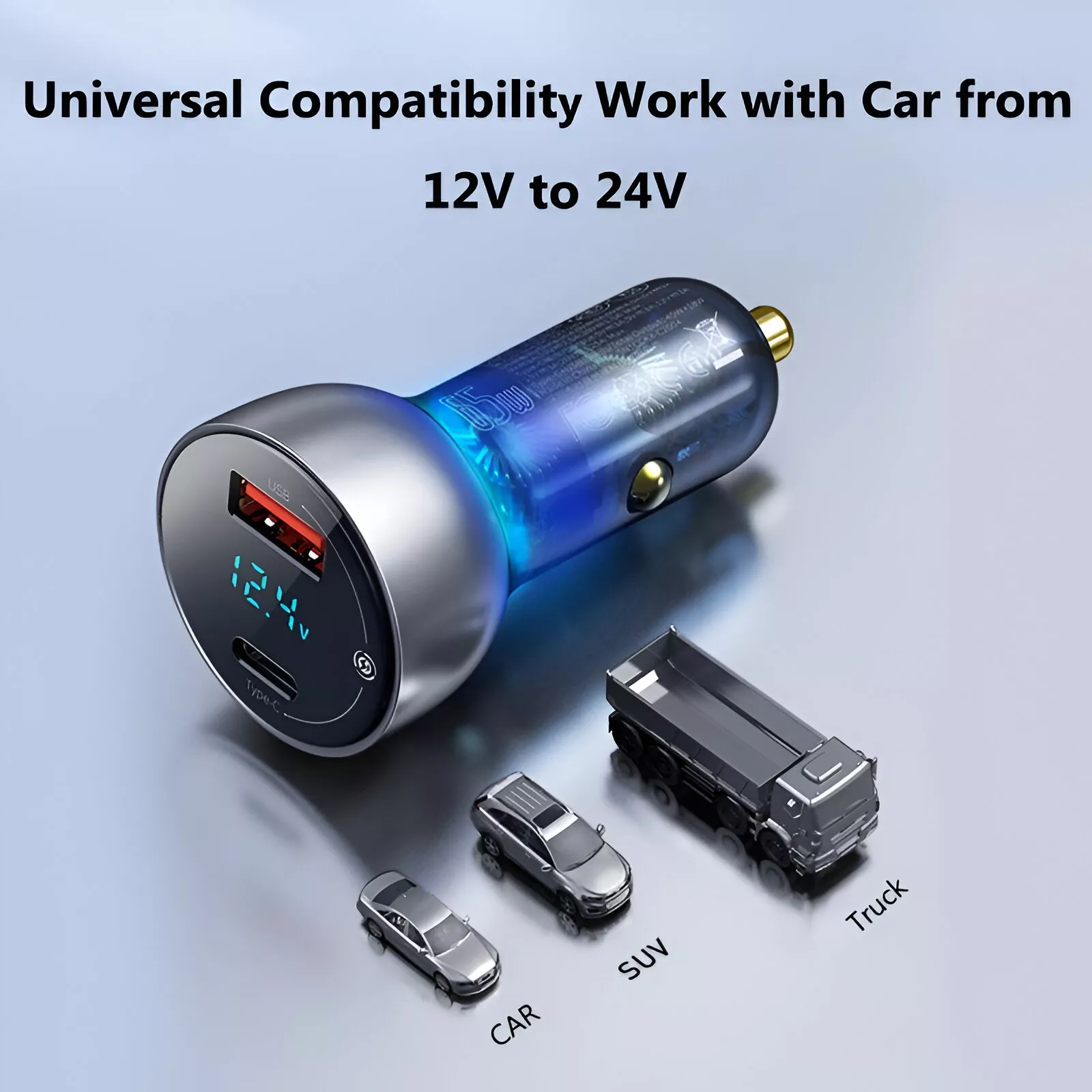 With advanced dual quick charging technology (QC + PPS), this charger adapts to your device’s needs, delivering safe and efficient power for all compatible gadgets. Crafted with durable aluminum and high-grade ABS, it’s built to handle everyday use while blending seamlessly into your car’s interior.