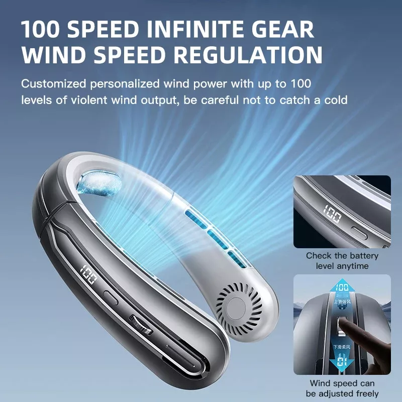 Beat the heat in style with the ultimate personal cooling solution — the 8000mAh USB Rechargeable Bladeless Neck Fan. Whether you’re on the move, at the gym, working outdoors, or just relaxing at home, this sleek, portable fan keeps you cool and comfortable without tying up your hands. With its smart bladeless design and whisper-quiet operation, it’s the perfect companion for hot days, intense workouts, or even crowded commutes.