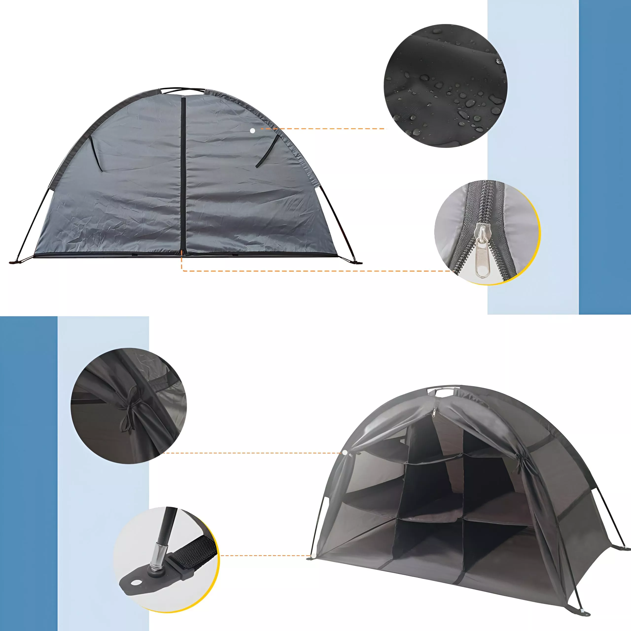 What sets this organizer apart is its mix of strength and portability. You get the durability to hold heavy items, the breathability to prevent odor buildup, and a compact design that fits inside tents, RVs, or under awnings. No more rummaging through bags or dealing with campsite chaos — everything you need is right where you want it.