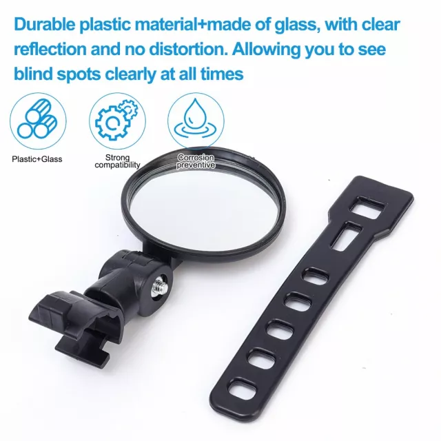 Thanks to its wide-angle convex mirror and full 360° rotation, you get a panoramic rear view from any angle. Its durable plastic and glass build ensures clear, distortion-free reflection that stands up to daily use, vibrations, and weather. The adjustable elastic buckle strap offers a snug and secure fit for most handlebars, making it compatible with virtually all bikes and scooters.