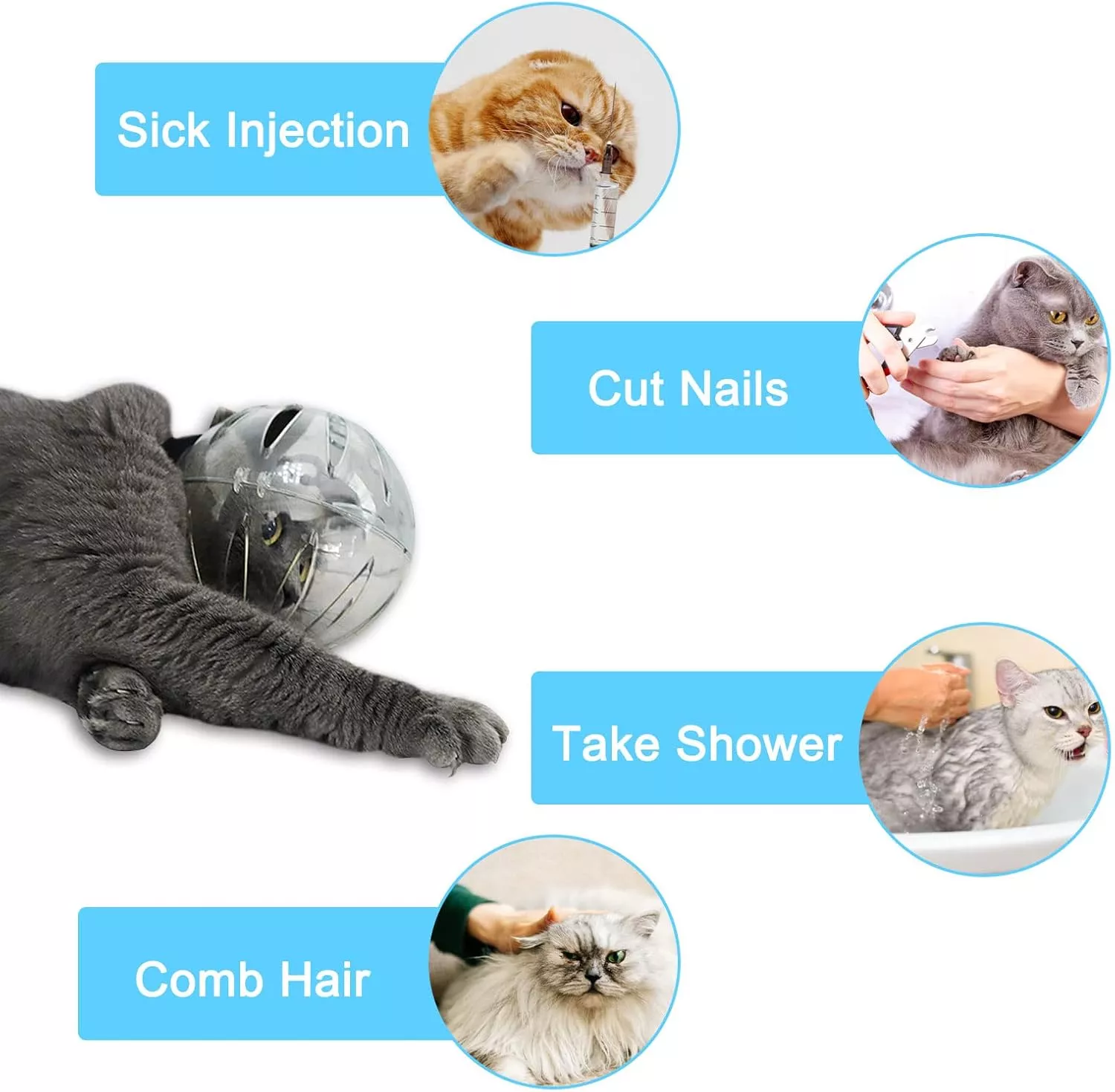 Use this protective cat muzzle and boots set during nail trims, baths, haircuts, vet visits, or any situation where your cat gets nervous or aggressive. It’s also perfect for post-surgery care to prevent licking and biting at healing wounds. Whether you have a small kitten or a large adult cat, this set helps you handle them with confidence and care.
