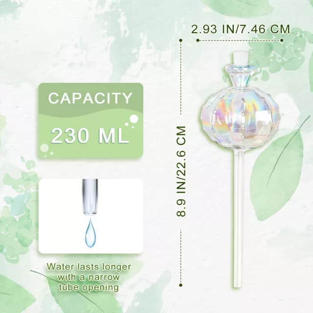 Crafted from high-quality, durable glass, this automatic feeder not only performs beautifully but adds a decorative touch to any plant pot. Measuring 8.9 inches by 2.91 inches, it’s the perfect size for both small and medium planters. The sleek, transparent design in cactus form adds a playful pop to any windowsill, desk, or garden corner.