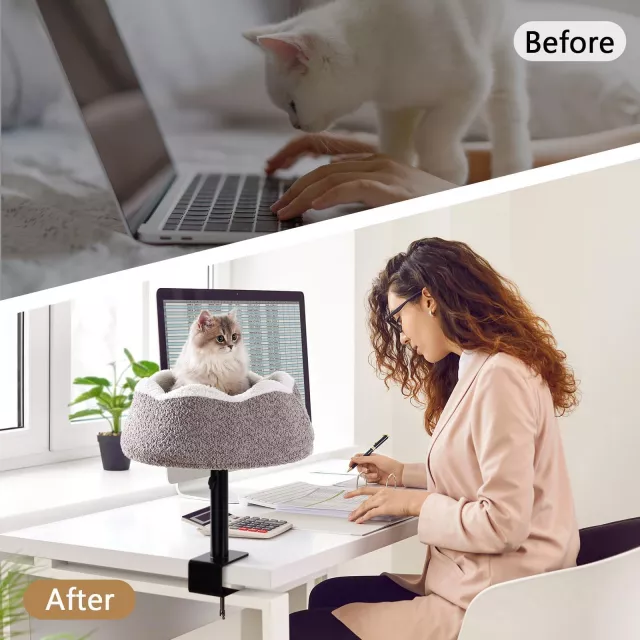 Turn your desk into a cozy retreat for your feline friend with this cleverly designed Cat Desk Perch Bed. This unique desktop cat bed lets you work in peace while giving your cat a front-row seat to your daily routine. Perfect for cat owners who love having their pet nearby but need a paw-free workspace, this cat perch makes bonding time easier and keeps your kitty safely perched at arm’s reach.