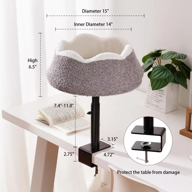 With a smart 360-degree rotating base and adjustable height from 6.5 inches to 10 inches, it easily clamps onto most desks — no drilling required. Whether your cat wants to nap in the sun or keep an eye on your every move, this perch swivels smoothly for the perfect angle. Made with soft, durable cotton and a removable plush pad that’s machine-washable, it offers a comfy and secure space your cat will adore. The full wrap-around raised edges add a sense of safety, giving your cat a snuggly nook they’ll claim as their own.