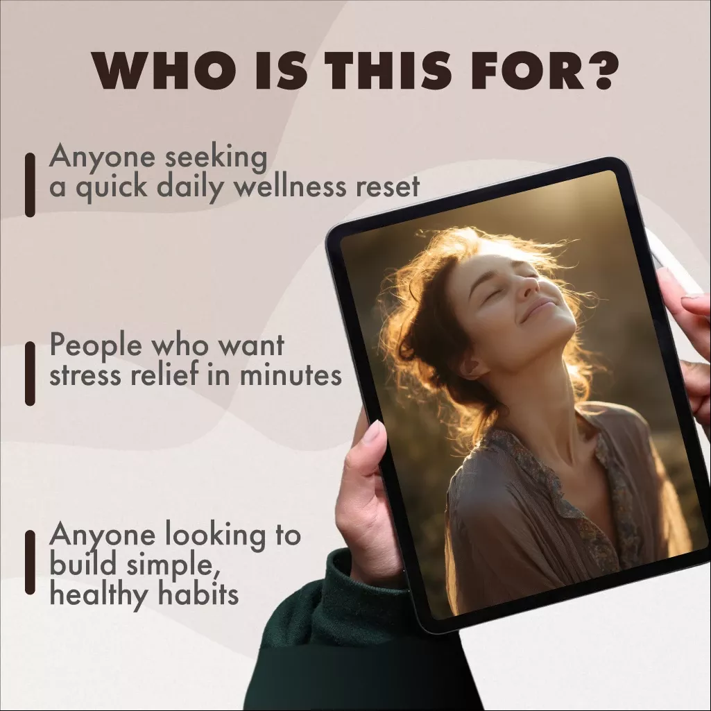 Unlike generic wellness guides, this plan is short, practical, and actionable. You don’t need special equipment, apps, or hours of free time. All you need is five minutes and a glass of water to unlock the benefits of mindfulness, hydration, and energy renewal. Plus, with bonus AI hacks and a ready-to-go eCommerce perk, it offers more value than standard checklists or ebooks.