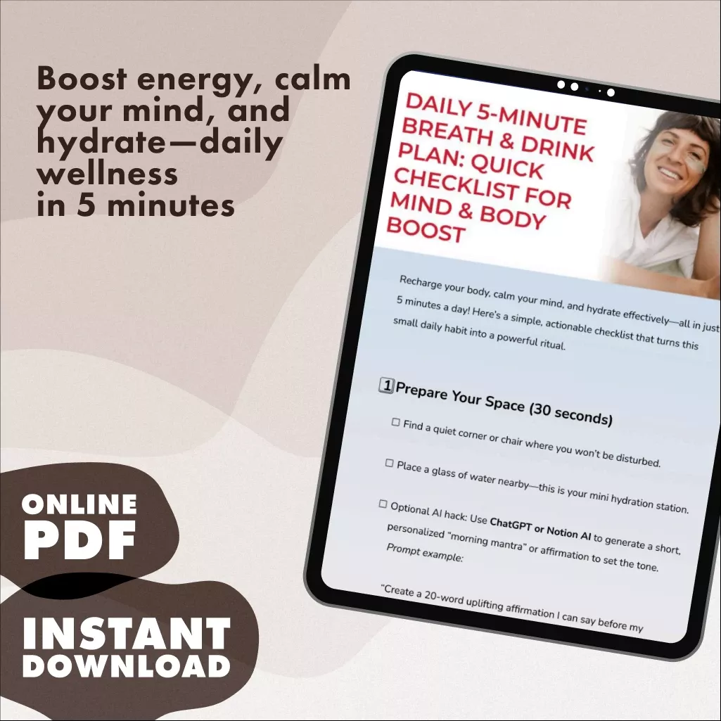 Don’t wait to feel more energized and clear-headed. Download the Daily 5-Minute Breath & Drink Plan: Quick Checklist for Mind & Body Boost today and start transforming your mornings—and your mindset—in just five minutes a day.