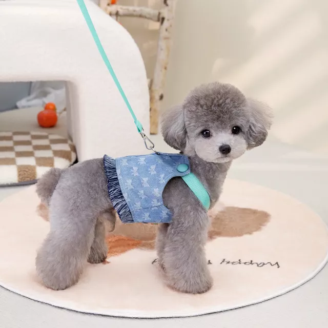Give your furry friend the perfect combination of comfort, safety, and fashionable style with our Denim Dog & Cat Harness Vest with Leash. Whether you’re taking your playful puppy, curious kitten, or tiny companion for a stroll, this harness set is designed to make every outing secure and stylish. Crafted with soft cotton mesh lining and durable denim on the outside, this vest is gentle on your pet’s fur while ensuring a snug fit that prevents pulling or discomfort.