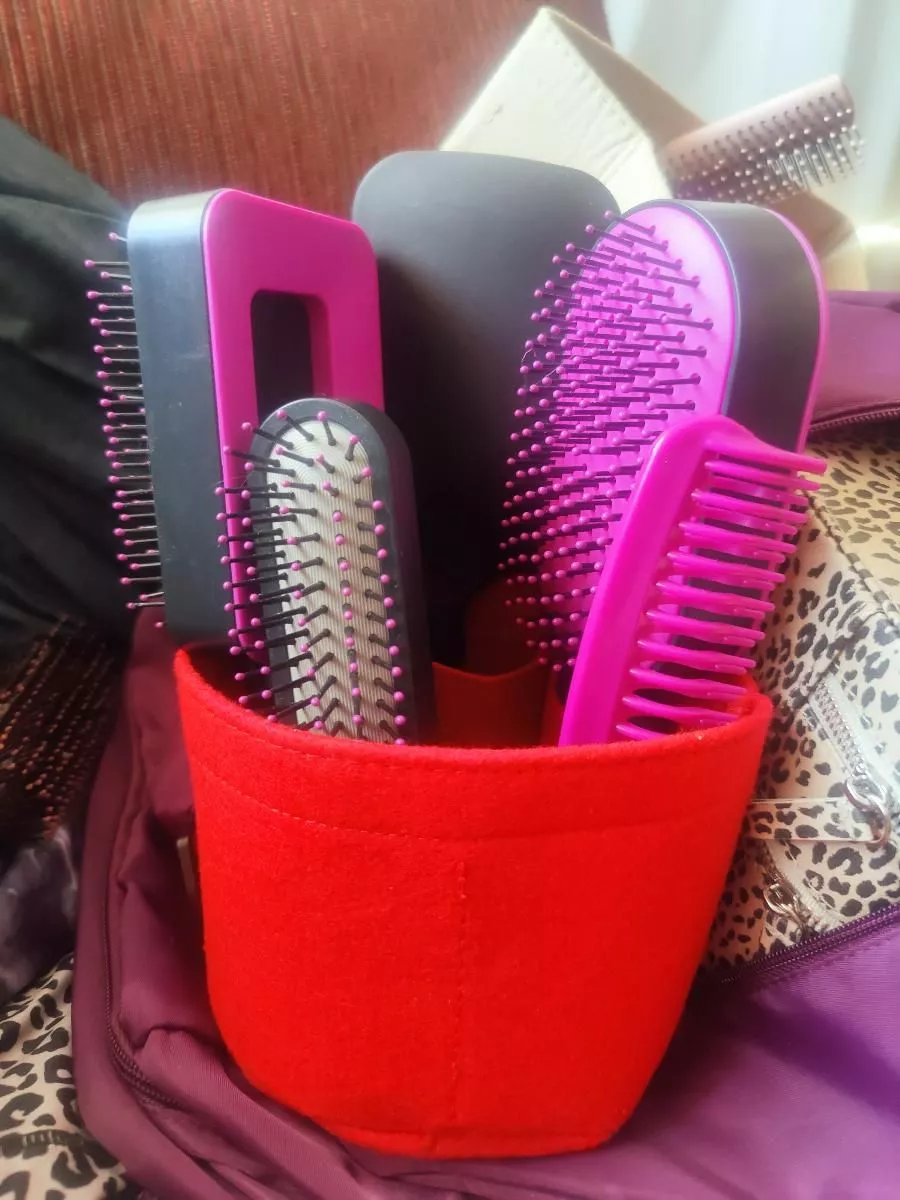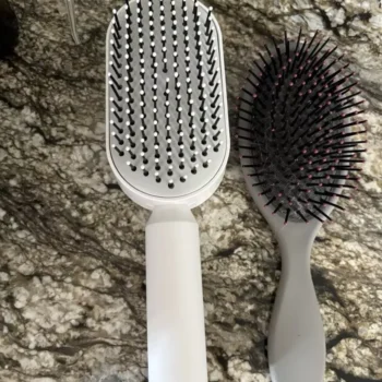 The anti-static material of this brush is truly impressive! My hair used to be frizzy after brushing but not anymore! Now my locks are smooth and shiny all day.