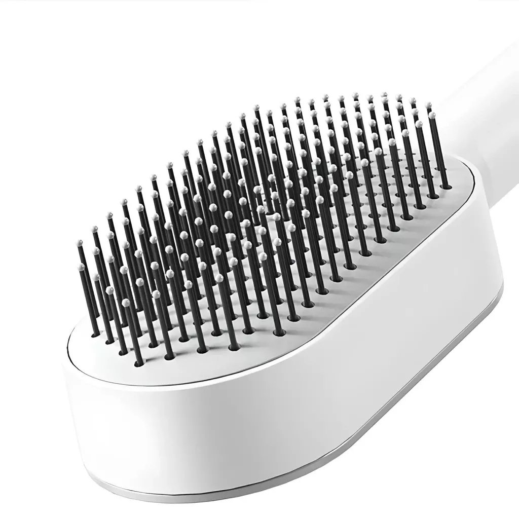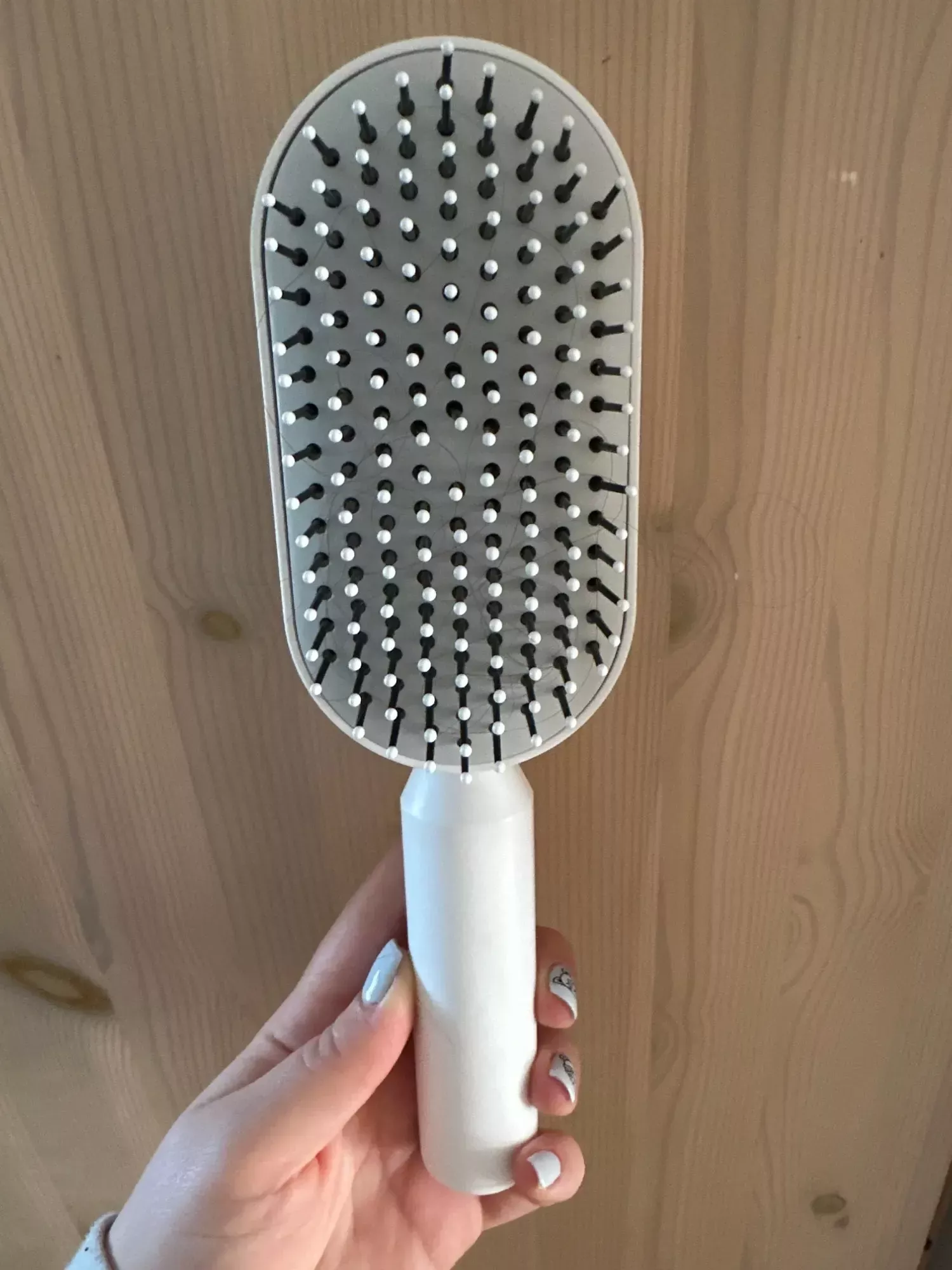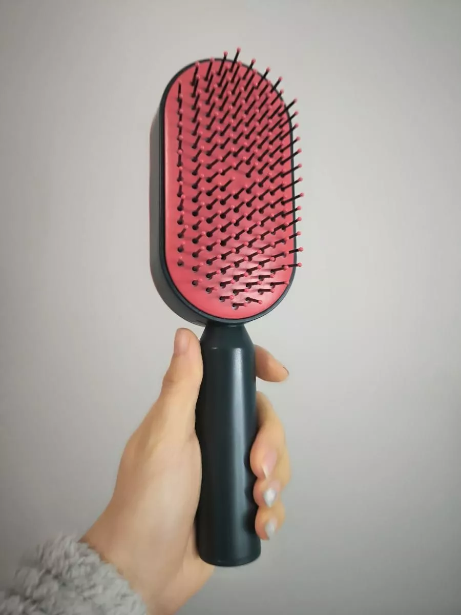 This brush has been an absolute game-changer in my daily grooming routine. It's so easy to clean with its one-key self-cleaning system - just push out trapped hair with a click! I've noticed less breakage since using this brush as it detangles without pulling at my strands.
