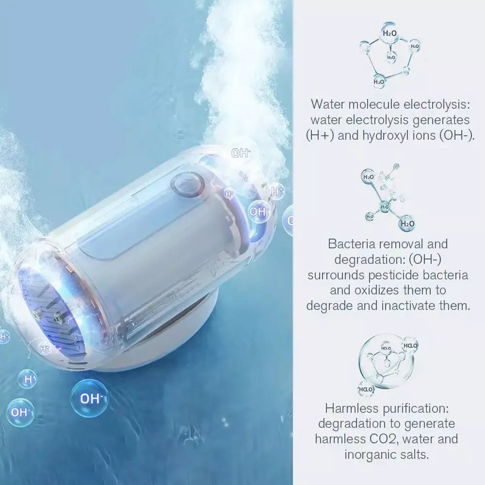 Discover the future of food safety with our Dual-Core OH-Ion Wireless Fruit & Vegetable Pesticide Purifier. Transforming ordinary water into a powerful cleaning agent, this innovative device ensures your food is free from harmful substances, without any chemical additives. It’s not just a cleaning tool; it’s your partner in maintaining a healthy, toxin-free diet.