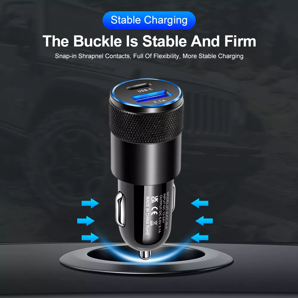 Featuring both a USB-A and USB-C output interface, this car charger is compatible with a wide range of devices—including iPhone 14/13, Samsung, Huawei, Xiaomi, and more. It supports Qualcomm Quick Charge protocols, ensuring efficient, optimized charging for your smartphone or tablet. The intelligent circuit design protects your device from overcharging, overheating, and short circuits, giving you peace of mind with every use.
