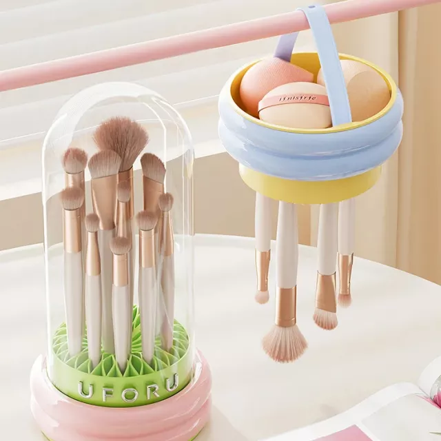 Dustproof Makeup Brush & Sponge Organizer with Hanging Drying Holder