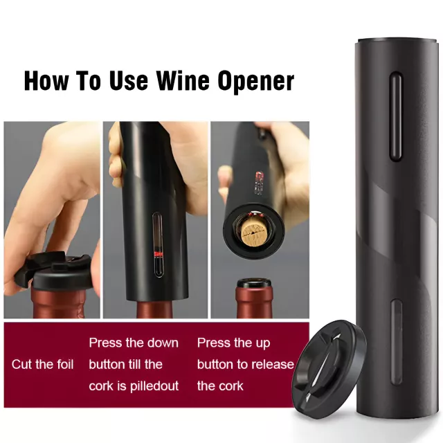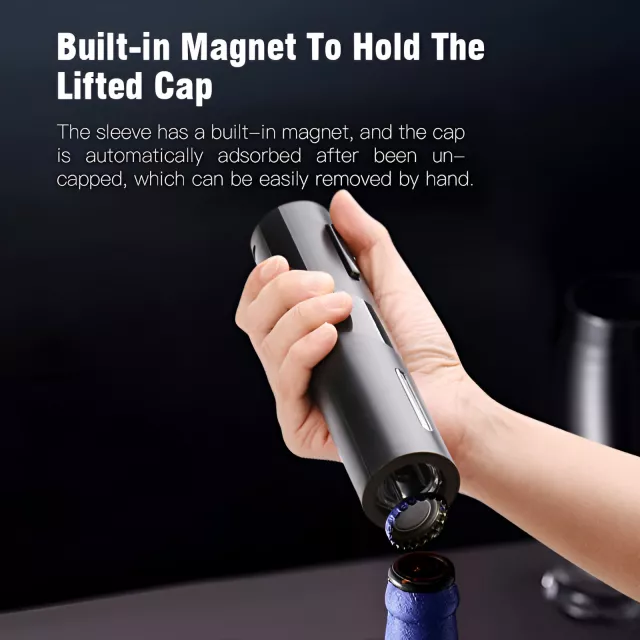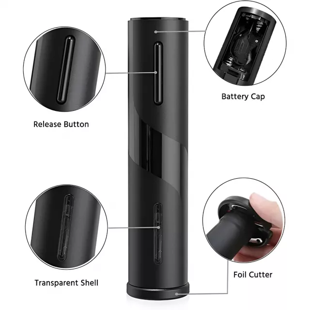 Thanks to its low-noise motor, compact size of approximately 8.5 x 1.9 inches, and stylish black finish, this opener adds a professional touch to your wine and beer experience. It’s ideal for anyone who appreciates quality, ease of use, and a touch of sophistication when opening a bottle.