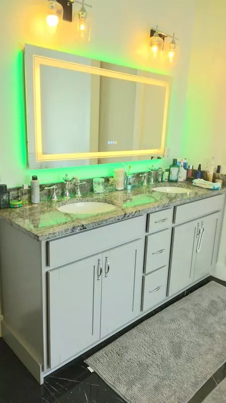 From the moment I laid eyes on this LED vanity mirror, I knew my bathroom was about to undergo a transformation reminiscent of a high-end spa retreat. The installation process was unbelievably straightforward, a fact that surprised and delighted me in equal measure. Guided by clear instructions, I was able to set it up without the need for professional help, a testament to its user-friendly design. But what truly sets this mirror apart is its dual lighting feature, incorporating both RGB backlighting and front lighting. This ingenious combination ensures that every corner of my face is illuminated without shadows, making my daily grooming rituals a pleasure rather than a chore. The ability to adjust the brightness with just a simple touch adds a layer of sophistication and convenience that I never knew I needed. Whether I'm applying makeup or simply admiring my reflection, the ambiance created by the adjustable lighting is nothing short of magical. The anti-fog feature, however, is the cherry on top. Gone are the days of waiting for the mirror to clear after a hot shower. Now, I can step out and immediately continue with my routine, uninterrupted. It's not just a mirror; it's a game-changer that enhances the quality of my daily life. In summary, this LED vanity mirror is not merely a tool for reflection. It's an upgrade to my bathroom that brings joy and convenience to my everyday routine. Its blend of aesthetic appeal, technological innovation, and practical functionality makes it an indispensable part of my home.