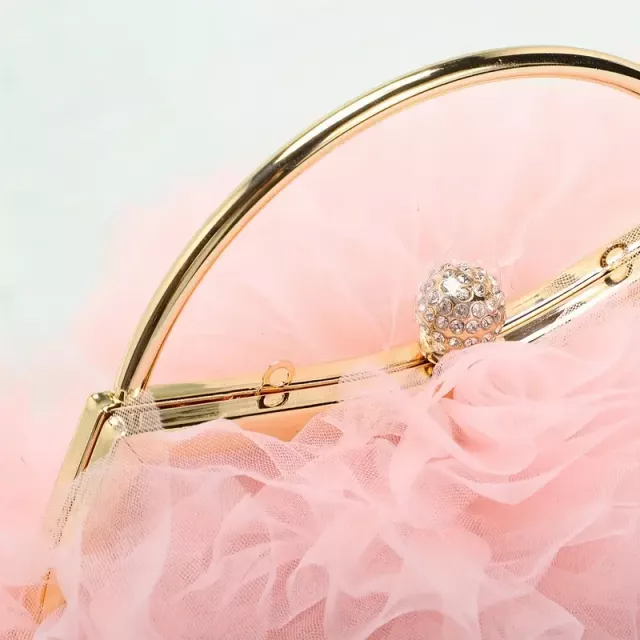 Elegant Mesh Lace Evening Clutch Bag with Metal Handle for Women