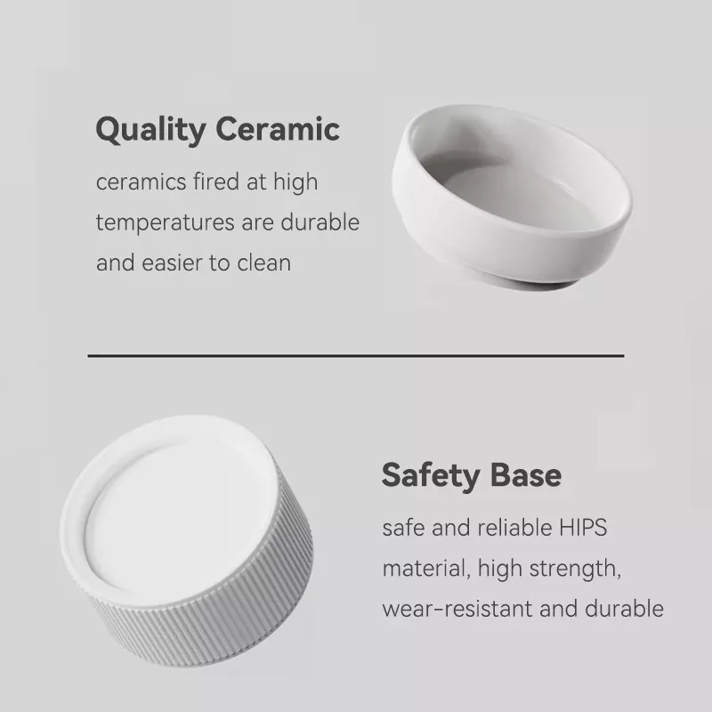 The combination of premium ceramic and sturdy plastic isn’t just about durability – it’s about keeping your pet’s health and comfort a top priority. Unlike cheap plastic bowls, ceramic is naturally odor-resistant, easy to sanitize, and gentle on sensitive noses and whiskers. The elevated base prevents tipping and keeps messes to a minimum, making feeding time stress-free for both you and your pet.