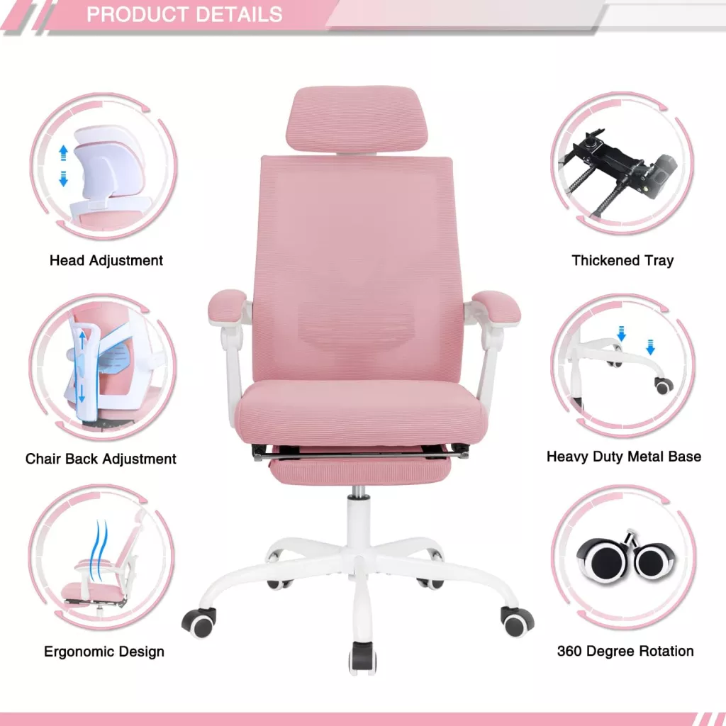 Unlike traditional office chairs, our Ergonomic Mesh Office Chair with Adjustable Footrest and Headrest offers a unique combination of adjustable features, breathable materials, and easy assembly. Its ergonomic design is specifically tailored to reduce fatigue and increase productivity, making it a must-have for any home office setup.