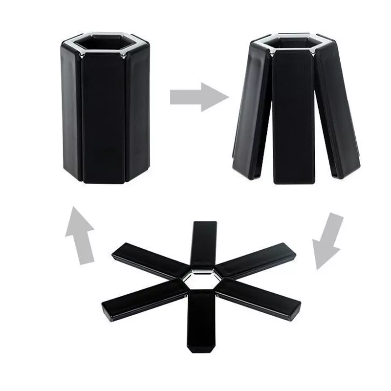 This heat-resistant mat is made from high-quality plastic with a smooth, plated surface that’s both sleek and durable. Measuring approximately 7.5 x 7.5 inches when opened and just under 1 inch thick, it supports a variety of cookware sizes while remaining lightweight and compact. Its foldable design allows you to tuck it away in drawers or hang it for easy access—ideal for kitchens of all sizes.