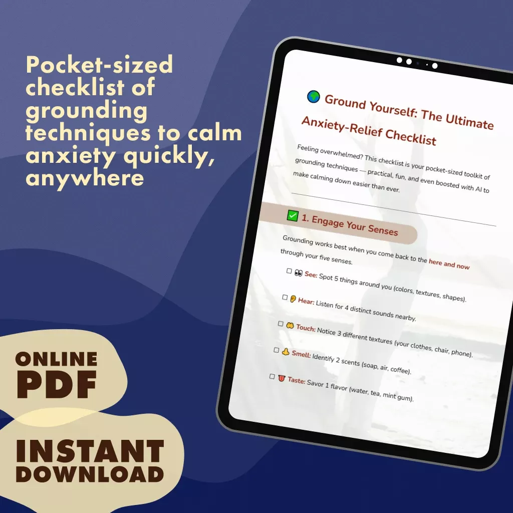 Don’t let anxiety take over your day. Download Ground Yourself: The Ultimate Anxiety-Relief Checklist now and keep a trusted guide in your pocket for whenever you need to reset, refocus, and find peace. Your calmer self is just one click away — grab your copy today!