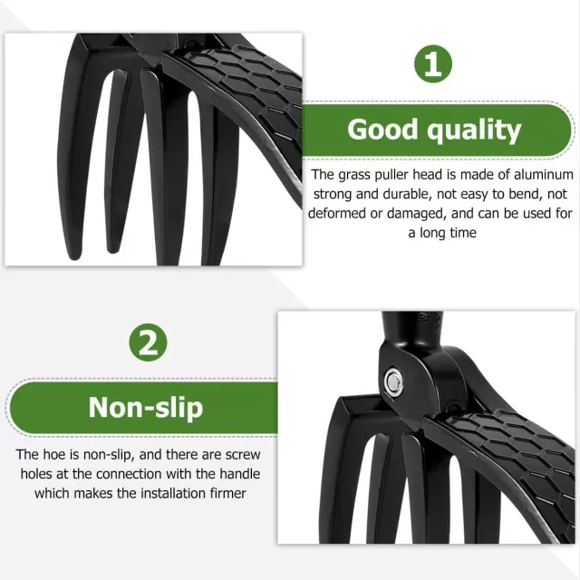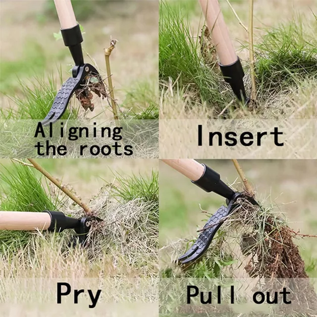 This innovative weeding tool features a durable 4-claw head made of premium aluminum alloy that grips weeds firmly at the root. Its curved jaw and barb design allow it to penetrate tough soil and hold tight to stubborn roots, so weeds come out clean with a simple twist and pull. The long handle design means you can stand tall while you work—no more sore knees or aching backs. The surface is painted for rust resistance, and the screw hole ensures a secure fit with any compatible handle.
