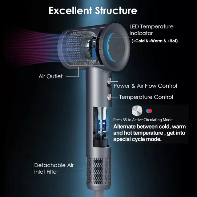 This isn’t just another blow dryer—it’s a high-end styling tool built with innovation in every detail. The combination of 200 million ions, smart chip tech, and six-layered noise control makes it stand out from anything you’ve tried before. The advanced airflow system dries efficiently without burning your hair, while the intuitive LED ring gives you full control. Lightweight, powerful, and sleek—this dryer brings the salon to your bathroom.