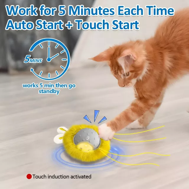 Designed with your convenience in mind, this interactive toy runs for 5 minutes and then enters a 1-hour rest period — perfectly timed to match your cat’s natural play and rest cycle. Your cat can tap it anytime during rest to restart the fun. If untouched, the toy automatically activates for a short burst to recapture your cat’s attention. It’s a worry-free way to ensure regular exercise and stimulation throughout the day.