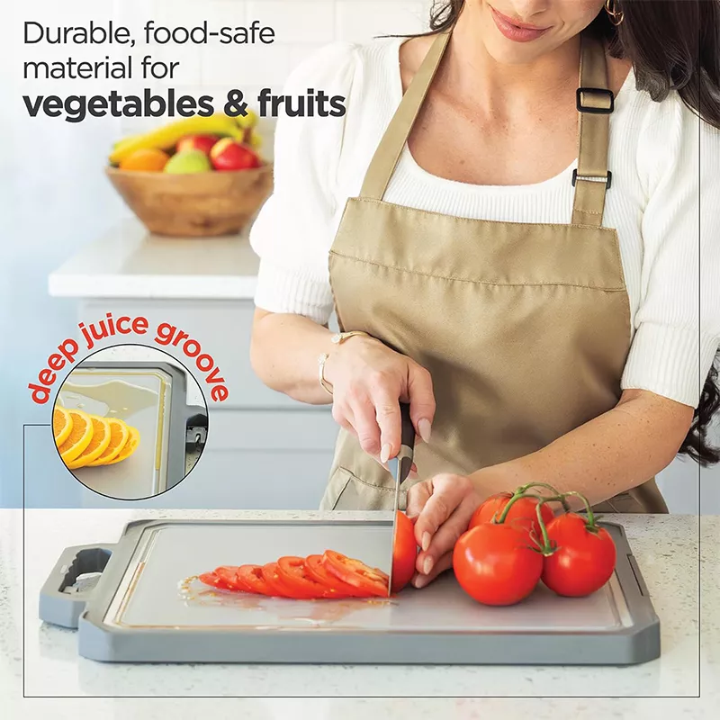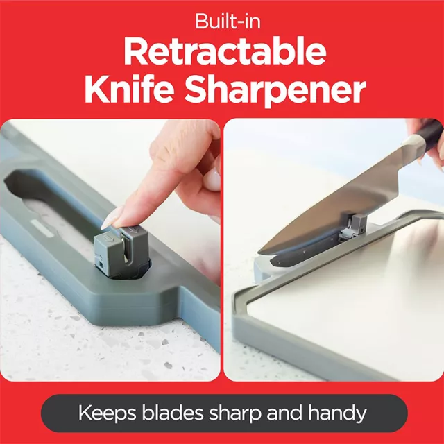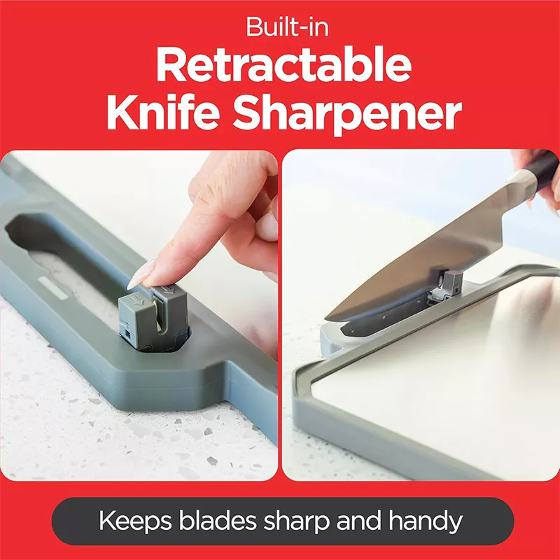 Unlike ordinary boards, this one combines cutting-edge materials with practical enhancements like the built-in knife sharpener. The stainless steel not only offers superior resistance to scratches and bacteria, but it also brings a sleek, modern look to your kitchen. Easy to sanitize and built to last, it’s a smarter, more stylish choice for clean and efficient cooking.