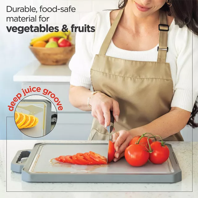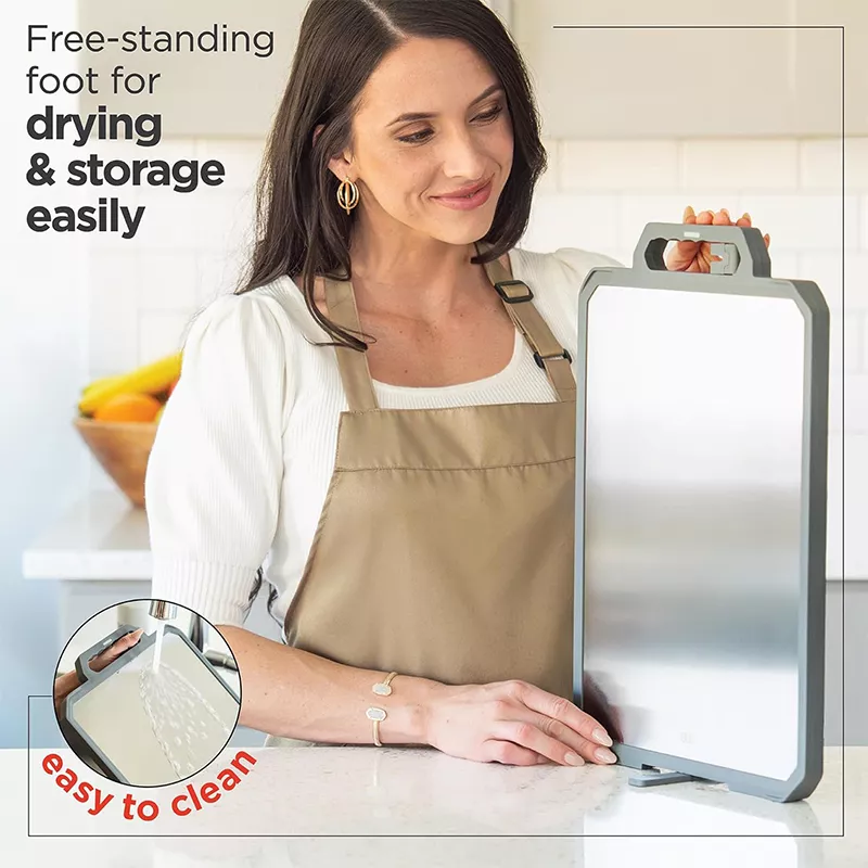 Make every slice smooth, every chop clean, and every knife stay sharp with this versatile stainless steel cutting board. Add it to your kitchen collection and experience the convenience of thoughtful design blended with unmatched durability.